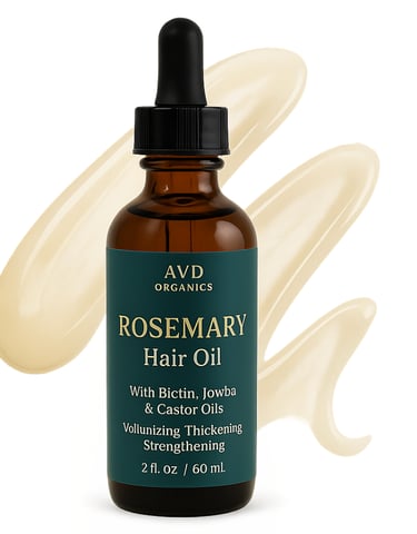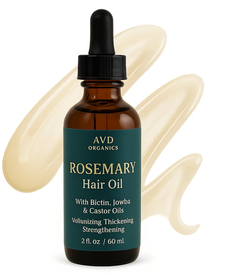 AVD Organics Rosemary Hair Oil. A rosemary-infused treatment designed to nourish and strengthen your hair naturally. With a blend of castor, jojoba, and biotin, it delivers rich moisture and shine without heaviness. This oil is free from parabens and synthetic additives, making it a perfect natural boost for all hair types. Ready to give your hair some plant-powered love?