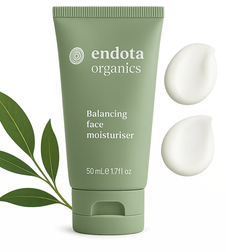 Endota Organics Balancing Face Moisturiser is a gentle, feather-light cream crafted for oily and combination skin. Blended with aloe vera and grapeseed antioxidants, it calms redness and inflammation while keeping skin hydratednot greasy. This clean formula supports balance and glow, without harsh additives. Use morning and night on clean skin for best results.