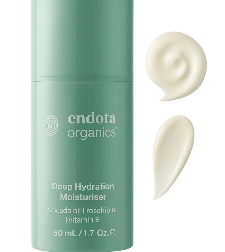 Endota Organics Deep Hydration Moisturiser – 50ml Give your skin deep, lasting nourishment with Endota’s bestselling Deep Hydration Moisturiser, infused with avocado oil, rosehip oil, and vitamin E. This rich yet lightweight formula melts into the skin, restoring softness and replenishing moisture all day.